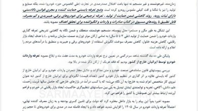 رئیس هیئتمدیره انجمن واردکنندگان خودرو ایران، در نامهای خطاب به معاون رئیسجمهور، با اشاره به مصوبه اخیر هیئت وزیران درباره تعرفه…