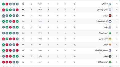 جدول رده بندی لیگ برتر فوتبال در پایان نیم فصل/ سه تیم مدعی مشخص شدند