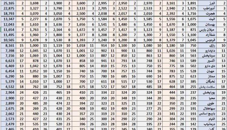 در انتهای جدول، شرکت‌هایی چون سلامت پخش، پوراپخش،