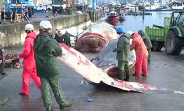 خروج لاشه نهنگ ۲۱ متری از آبهای ساحلی اسپانیا + فیلم