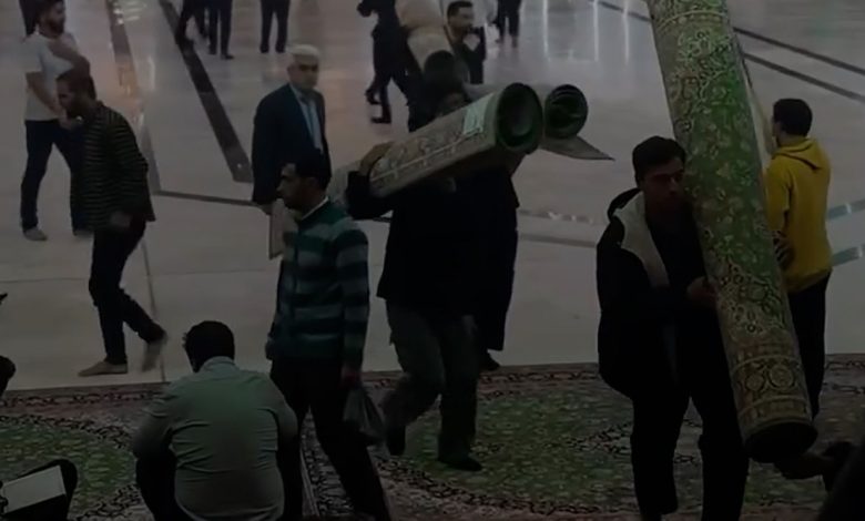 لحظه جمع آوری فرشهای مالک آینده از حرم امام حسین