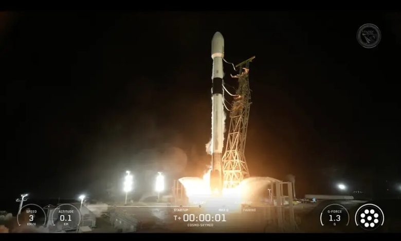به نقل از اسپیس، یک موشک «فالکون ۹» (Falcon 9) ساعت ۲۱:۰۹ به وقت منطقه زمانی شرقی از پایگاه نیروی فضایی وندنبرگ در کالیفرنیا پرتاب شد و یک ماهواره رصد زمین متعلق به ایتالیا را به مدار زمین برد.