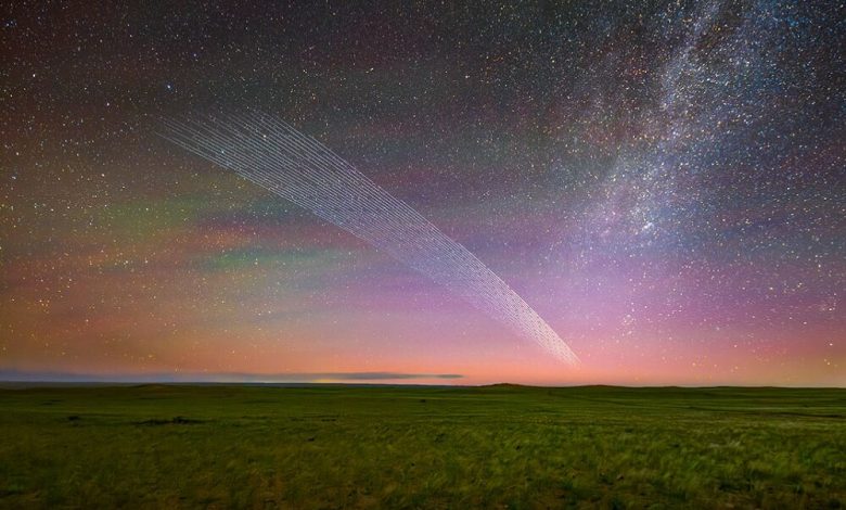 به گزارش جهانی مگ، آنچه در این عکس میبینید، دنباله بهجامانده از یک دنبالهدار نیست، بلکه یک توالی تایملپس هوشمندانه از گروهی از ماهوارههاست که در ماه ژوئن در مدار زمین میچرخیدند.